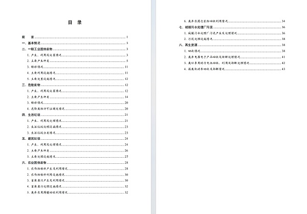 《报告》基于各地发布信息,系统梳理了全国固体废物产生的种类、产生量、处置能力和利用状况。主要内容分为8个部分: