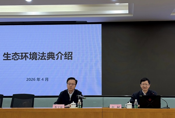 为深入学习贯彻习近平法治思想,精准把握新时代生态环境法治建设的新部署、新要求,2026年4月15日,生态环境部固管中心党委举行理论学习中心组(扩大)学习,邀请生态环境部法规司赵柯司长围绕《中华人民共和国生态环境法典》作专题辅导讲座。党委书记、主任李文强主持会议,中心全体党员干部职工参加会议。